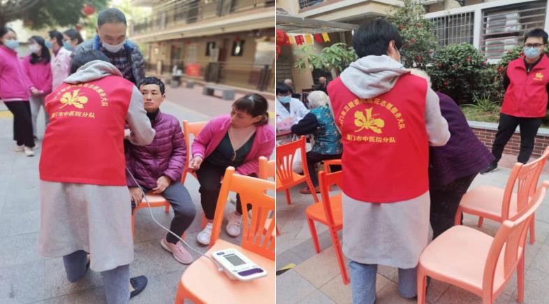 金瓶梅党员志愿者为老人们测量血压,协助不便的老人家就坐