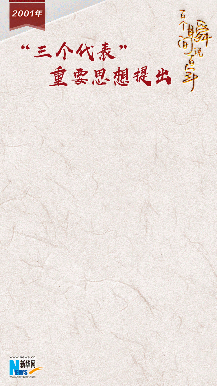 2001年7月1日,江泽民同志在庆祝中国共产党成立80周年大会上发表的讲话中,系统阐述了“三个代表”重要思想。他指出,我们党要始终代表中国先进生产力的发展要求,就是党的理论、路线、纲领、方针、政策和各项工作,必须努力符合生产力发展的规律,体现不断推动社会生产力的解放和发展的要求,尤其要体现推动先进生产力发展的要求,通过发展生产力不断提高人民群众的生活水平。我们党要始终代表中国先进文化的前进方向,就是党的理论、路线、纲领、方针、政策和各项工作,必须努力体现发展面向现代化、面向世界、面向未来的,民族的科学的大众的社会主义文化的要求,促进全民族思想道德素质和科学文化素质的不断提高,为我国经济发展和社会进步提供精神动力和智力支持。我们党要始终代表中国最广大人民的根本利益,就是党的理论、路线、纲领、方针、政策和各项工作,必须坚持把人民的根本利益作为出发点和归宿,充分发挥人民群众的积极性、主动性、创造性,在社会不断发展进步的基础上,使人民群众不断获得切实的经济、政治、文化利益。