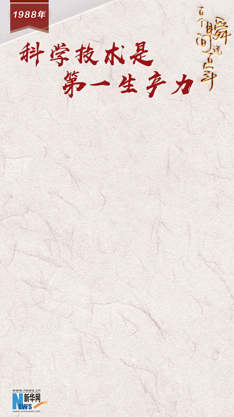 上世纪80年代中后期,科学技术进步推动社会经济发展的作用愈加显著,国际间以科技发展进步为主要支柱和主要动力的经济、军事、国家实力的竞争更趋激烈。1988年,邓小平以全新的视角,高瞻远瞩,对科学技术在当代生产力和社会经济发展中第一位的作用,作出了及时、明确的理论概括。同年9月5日,邓小平会见捷克斯洛伐克总统古斯塔夫·胡萨克,谈到科学技术发展时说:马克思说过,科学技术是生产力,事实证明这话讲得很对。依我看,科学技术是第一生产力。同年9月12日,他在听取中央领导同志工作汇报中,再次谈到科技问题。他指出:要注意教育和科学技术。马克思讲过科学技术是生产力,这是非常正确的,现在看这样说可能不够,恐怕是第一生产力。对科学技术的重要性要充分认识。科学技术是第一生产力嘛,知识分子是工人阶级一部分嘛。