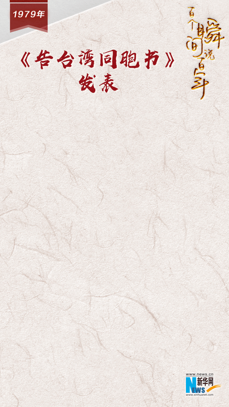 20世纪70年代后期,台湾问题被提上党和国家重要议事日程。1979年1月1日,全国人大常委会发表《告台湾同胞书》,郑重宣示了争取祖国和平统一的大政方针。此后,党中央进一步从全局高度统筹考虑祖国统一问题。
