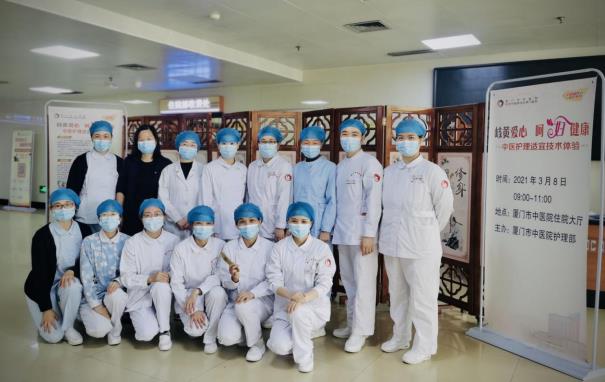 2021年3月8日上午9点,体验活动依约开展。本次活动由全国中医护理骨干及各科室中医护理骨干将火龙罐、艾灸、铜砭刮痧、耳穴压豆、穴位按摩等中医特色护理技术带到了现场:一把铜砭刮拭肩颈,解决了市民陈大姐的颈椎病之痛,也帮陈阿姨找到缓解腰痛的“门路”;巧手按摩头部穴位缓解了李小姐的头痛;两个艾灸盒给周阿姨的“老寒腿”带去了温暖;几个王不留行耔贴于耳穴上辅助于降压;小小的火龙罐在现场成了“热门”,特制的罐体结合艾灸的温热作用和刮痧的按摩作用,缓解现代人常有的肩颈通、腰腿痛,现场的女士们争先体验。
