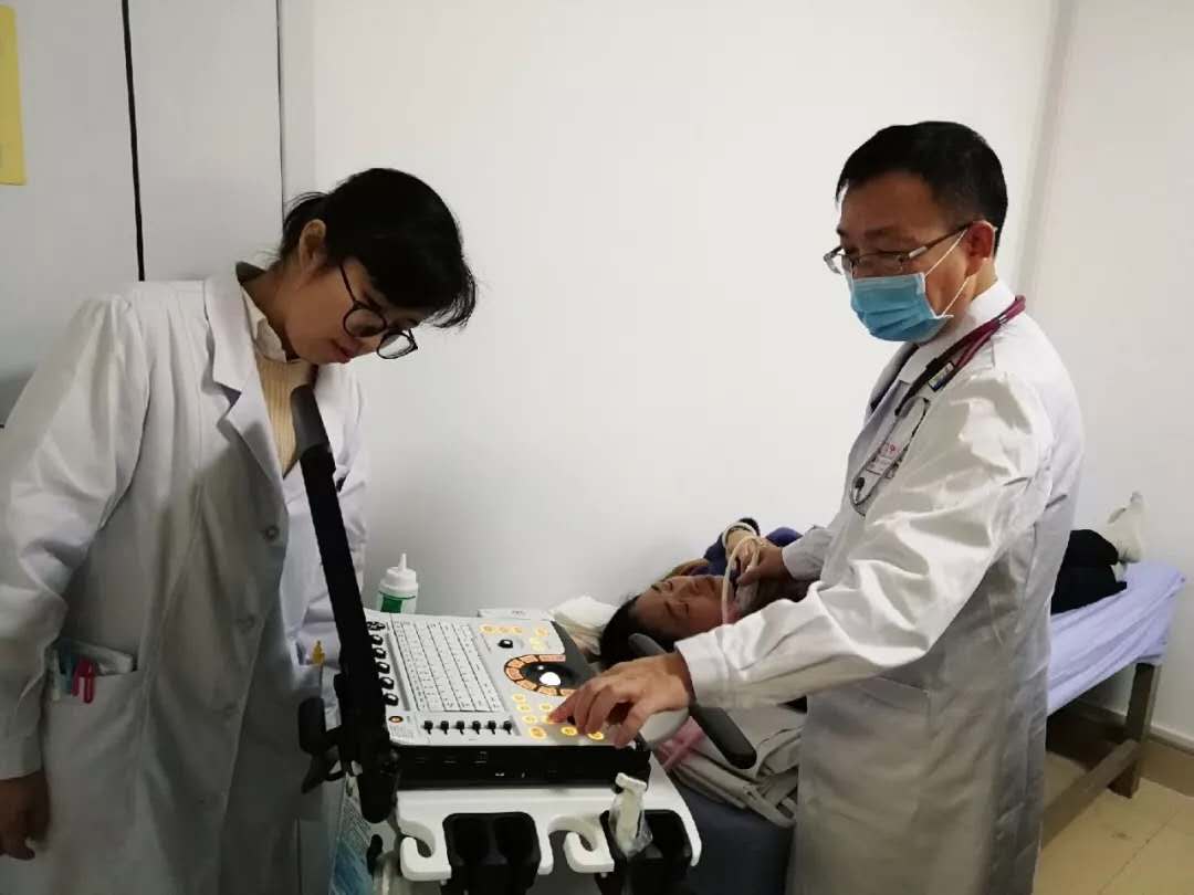 刘超教授(右) 带领包括叶向荣主任、曾华蓉医生等团队成员在门诊现场为患者进行甲状腺超声检查、超声引导下细针穿刺检查、超声引导下甲状腺炎局部治疗。提高诊治效率,优化诊治流程,制定规范化、个体化、连续性的综合治疗方案,更好的为患者提供高效地诊治疾病的服务。以“甲状腺MDT”为代表的金瓶梅 医疗特色品牌,其影响力已逐渐辐射闽南地区。目前漳州、龙岩、三明等地的患者络绎不绝,甚至云南的患者不昔远赴千里来刘超教授门诊求诊。临夏市中医院专程来金瓶梅 内分泌科参观交流,平和县医院、云霄县医院邀请金瓶梅 内分泌科主任就甲状腺疾病为其进行包括教学查房、专科医师培训等规范化培训。