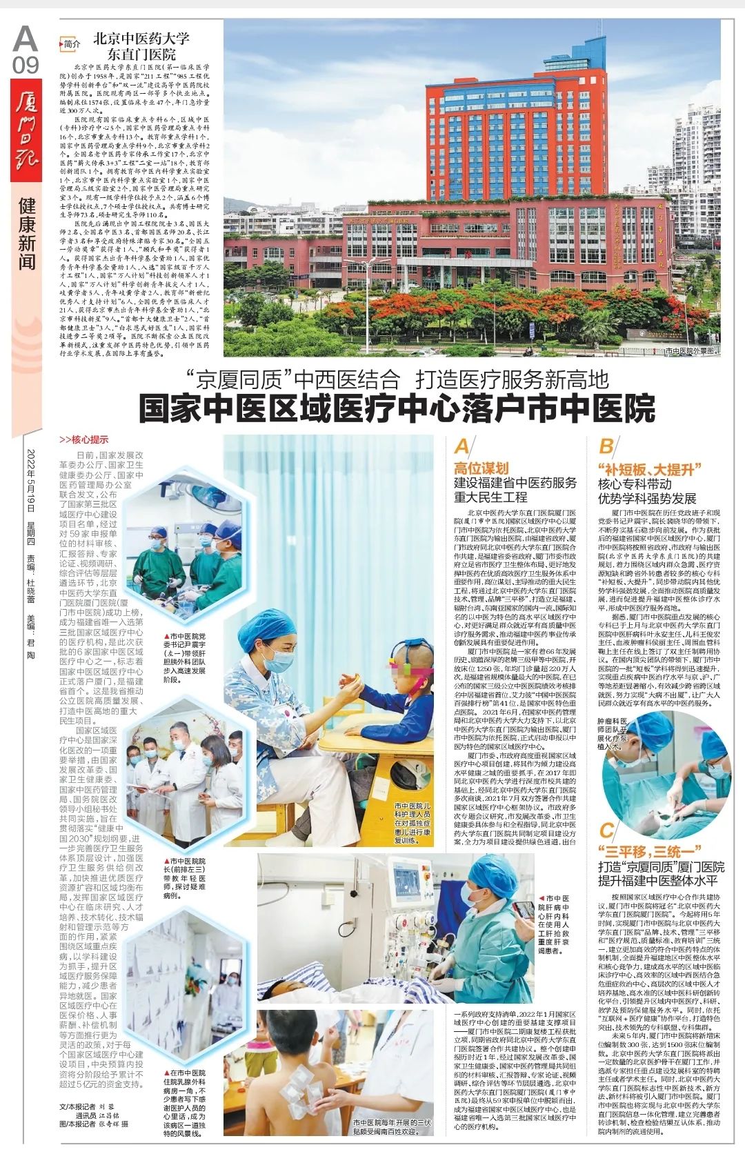 打造“京厦同质”厦门医院,提升福建中医整体水平