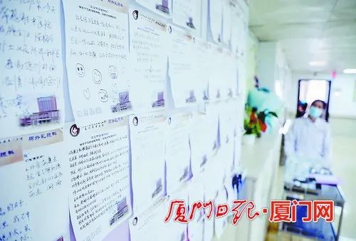 在市中医院住院乳腺外科病房一角,不少患者写下感谢医护人员的心里话,成为该病区一道独特的风景线
