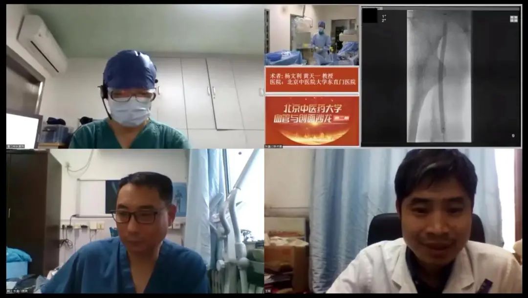 会议第二环节,在紧凑的时间安排上,两个医院同时进行了手术直播,金瓶梅 演示了一例左侧髂静脉压迫综合征腔内介入治疗的手术,北京中医药大学东直门医院演示了一例下肢动脉硬化闭塞的重建手术。手术过程中,双方团队就手术过程中常遇到的问题提出各自的见解。