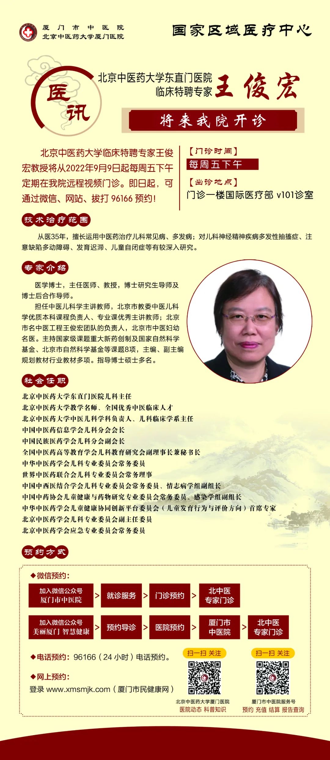 国家区域医疗中心医讯 | 儿科特聘专家—王俊宏教授将于每周五下午出远程视频门诊