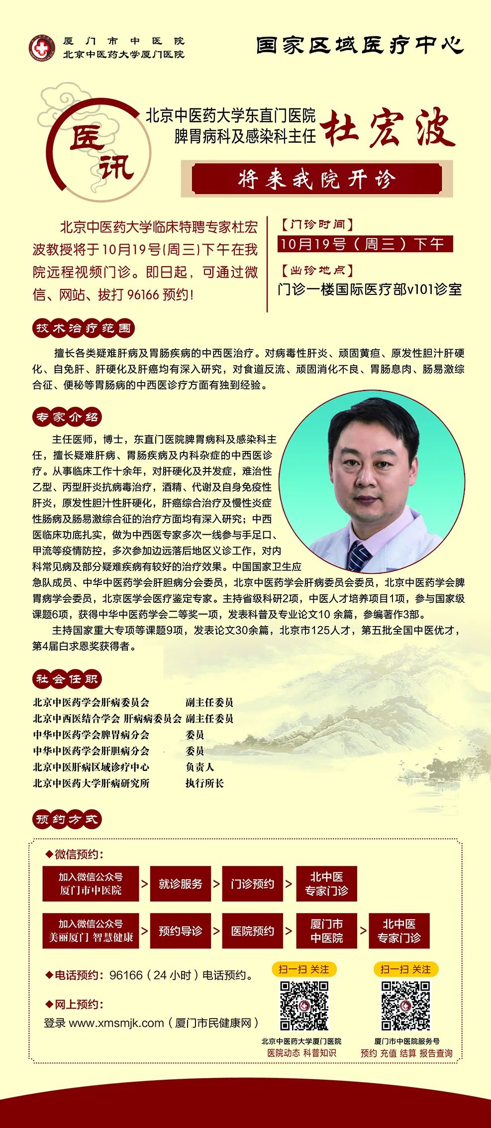 国家区域医疗中心医讯|北京中医药大学东直门医院脾胃病科及感染科主任杜宏波教授将来金瓶梅 开诊啦!