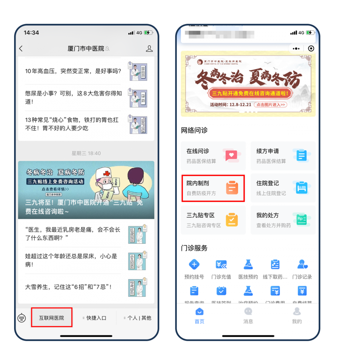 其一,可点击以下“金瓶梅 ”公众号进入互联网金瓶梅 平台---网络问诊---院内制剂,进行问诊开方。