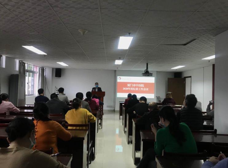 纪检监察室主任张旭灿首先通报了2020年厦门市卫生健康系统纪检监察工作要点,纪委书记谢剑灵对今年的工作提了五点要求: