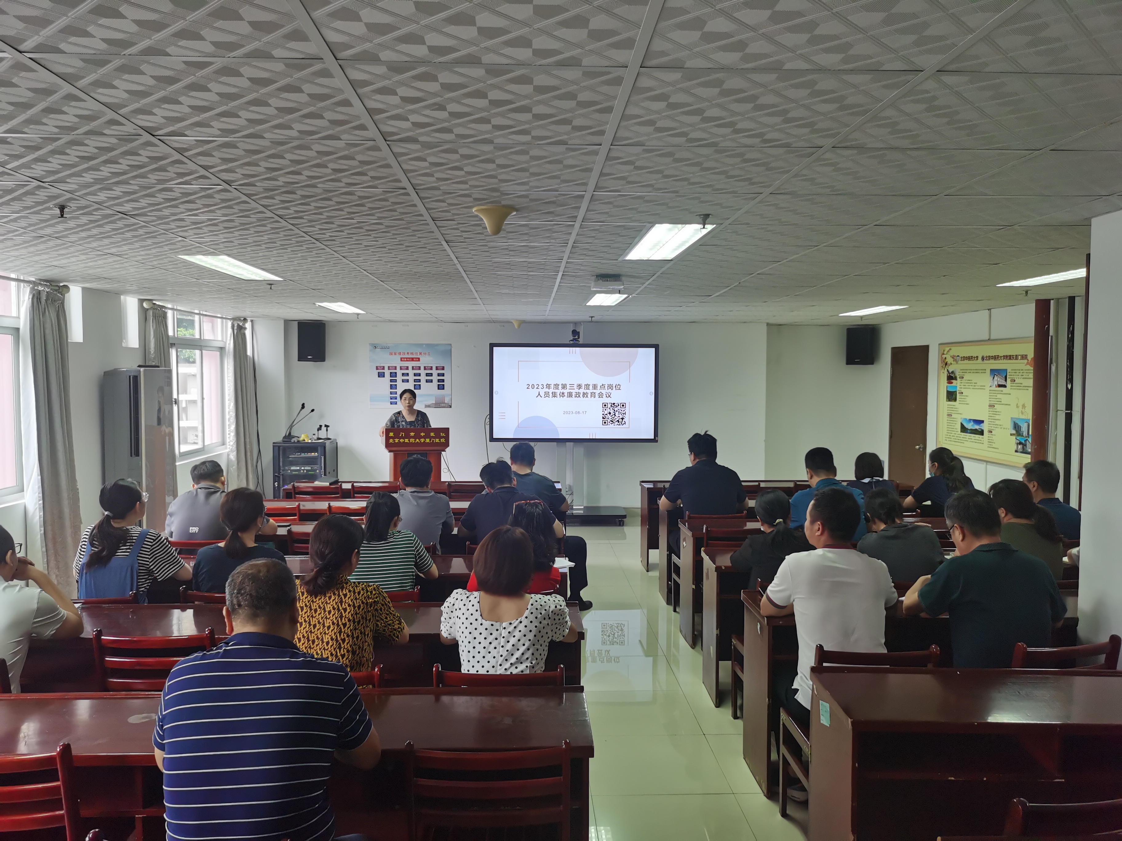 8月17日,监察审计室组织院重点岗位人员41人开展第三季度重点岗位人员廉政教育会议,强调本次整治工作重点,全面解读全市医药领域腐败集中问题集中政治重点任务工作清单、厦门市医药领域重点负面清单,动员各重点岗位人员自查自纠。